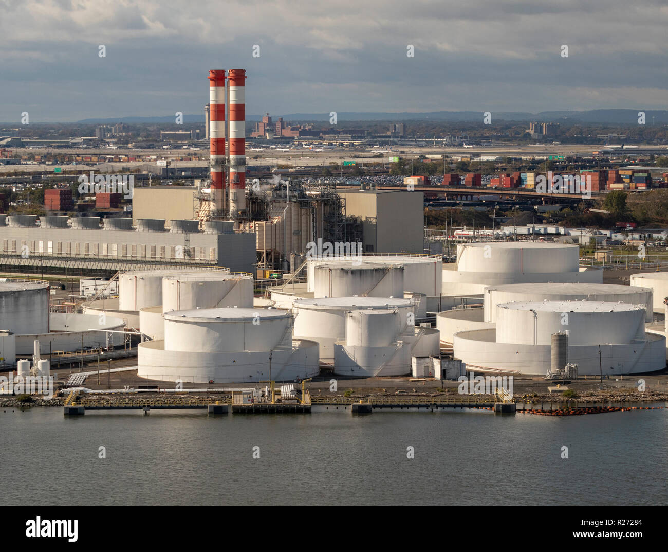 Helicopter Aerial View Of The Newark Energy Center And Adjacent Fuel Storage Tanks Newark New Jersey Usa Stock Photo Alamy